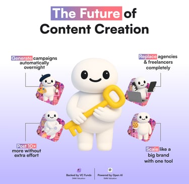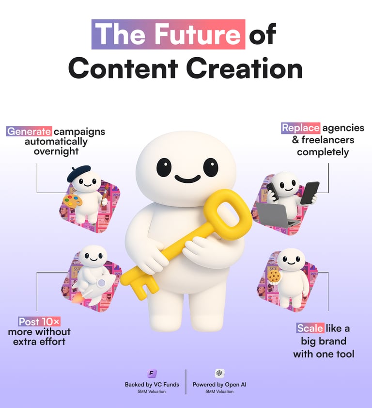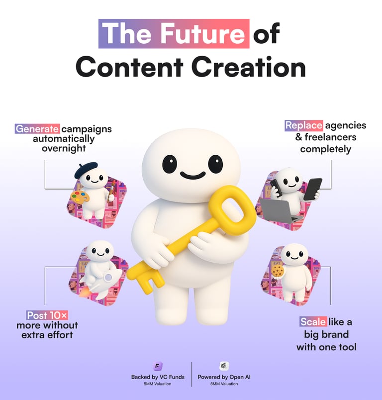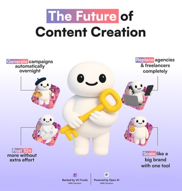 No other AI tool learns your brand’s DNA (tone, message, audience pain points) and instantly creates personalized marketing assets.